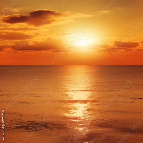 © ArsakhaDevandra, Naklejka premium Fiery Sunset Over Calm Ocean Waves