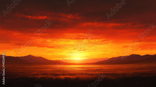 Fototapeta premium Fiery Sunset over Desert Dunes A Dramatic Landscape Painting