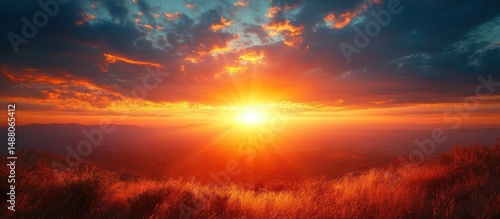 Fototapeta premium Fiery Sunset Over Hill