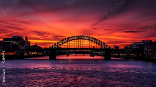 © Gala, Naklejka premium Fiery sunset over Tyne Bridge.