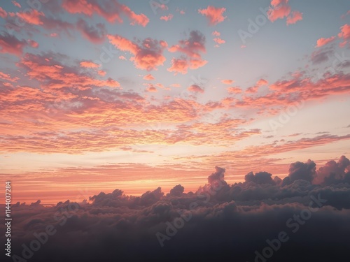 Fototapeta premium Fiery sunset paints the clouds vibrant orange and pink, as twilight descends,...