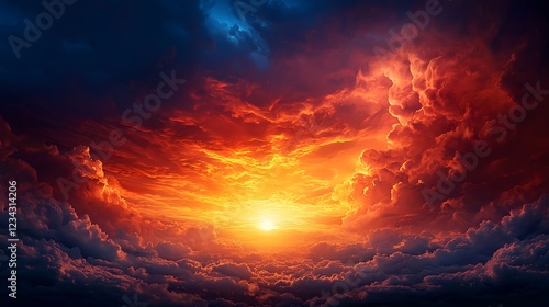 © Arthur Constantine, Obraz premium Fiery Sunset Sky Dramatic Cloudscape