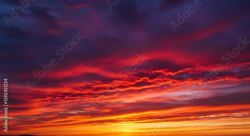 © Thuy, Obraz premium Fiery Sunset Sky: Dramatic Evening Cloudscape Photography AI Generated