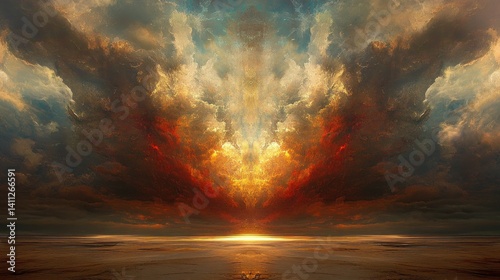 Naklejka premium Fiery Sunset Sky, Symmetrical Clouds