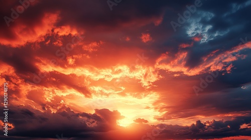© Crafted, Obraz premium Fiery sunset sky with dramatic clouds