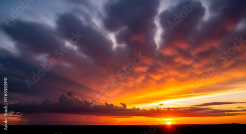 Obraz premium Fiery Sunset Sky with Dramatic Clouds - Landscape Nature