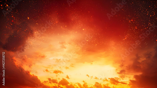 © artzone, Fototapeta premium Fiery Sunset Sky With Golden Clouds