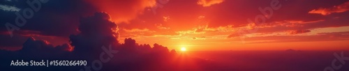 © Duangjai, Obraz premium Fiery sunset, vibrant cloudscape, dramatic light, landscape, fiery