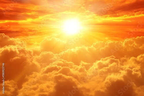 © anak, Fototapeta premium Fiery sunset with sun rays through clouds.