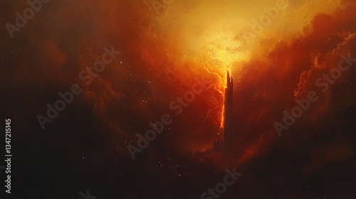 Obraz premium Fiery Tower Piercing Inferno Skies