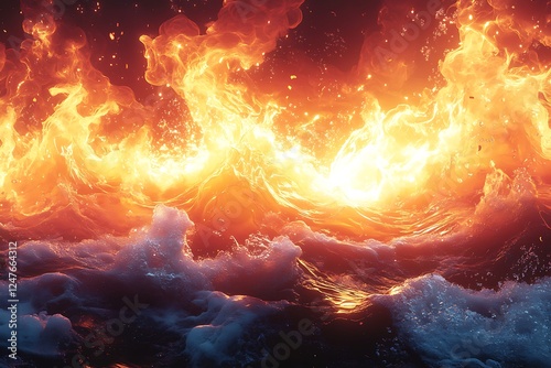 © Ashraf, Obraz premium Fiery Waves of Molten Lava Flowing Over a Surface