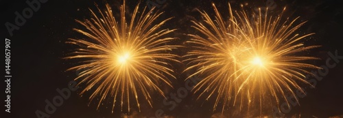 Naklejka premium Fiery yellow fireworks bloom, wide shot, intense heat , fiery, majestic,...
