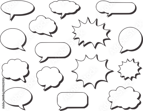 © Mehedy, Obraz premium Fifteen black and white empty speech bubbles in varied shapes
