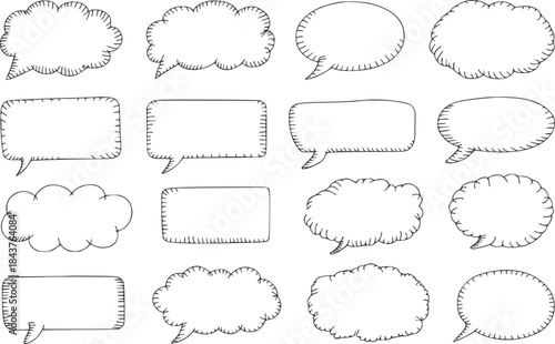 Fototapeta premium Fifteen hand drawn black and white speech bubbles in varied shapes