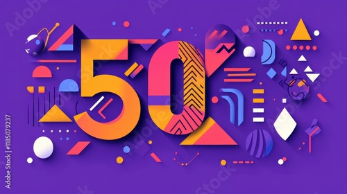 © ROKANI, Fototapeta premium Fifty percent off sale banner, geometric background, online advertising