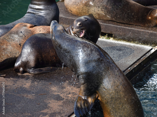 © Bonita, Fototapeta premium Fight Breaks Out on Sea Lion Dock