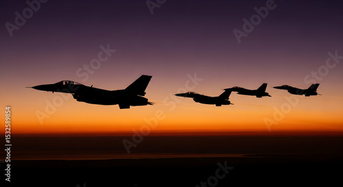 © Sugiri80, Fototapeta premium Fighter Jets Flying Silhouette Orange Sky