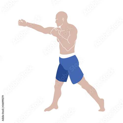 Obraz premium fighting man in sportswear, boxer, karate, vector illustration