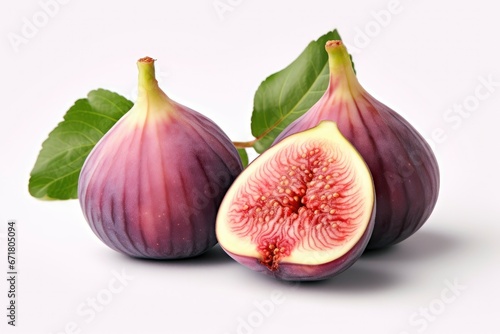 Obraz premium Figs Among Green Leaves on a Clean White Background Created With Generative...