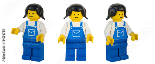 © Bittbrew, Fototapeta premium Figura de mujer cartera de LEGO oficial. Tres posturas. Imagen aislada