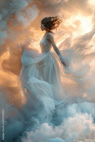 Fototapeta premium figure dressed in soft flowing translucent fabric gown