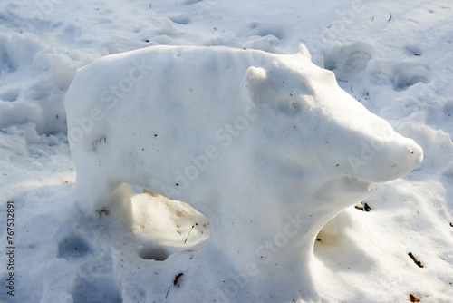 Naklejka premium Figure of a wild boar made from snow in the park