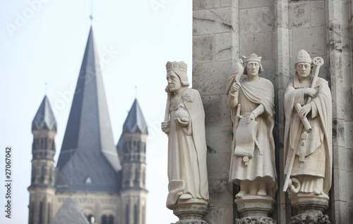 © bilderstoeckchen, Fototapeta premium figuren am historischen rathaus köln,hintergrund groß st. martin