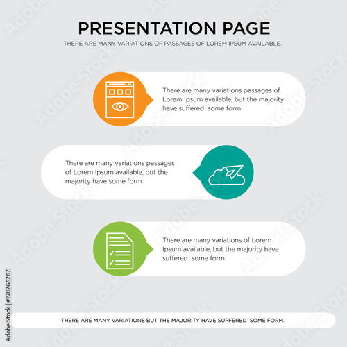 Fototapeta premium File, Cloud messaging sent, Remote access presentation design template in orange, green, yellow colors with horizontal and rounded shapes