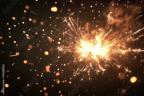 © Anjali, Fototapeta premium file of mixed of spashing fire work on black