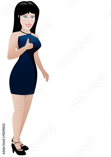 © Onidji, Fototapeta premium Fille en robe bleu avec son pouce levé (détouré)
