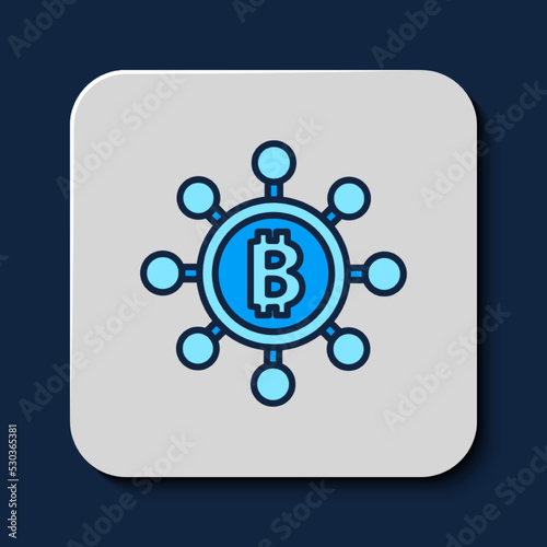 © Kostiantyn, Obraz premium Filled outline Blockchain technology Bitcoin icon isolated on blue background. Abstract geometric block chain network technology business. Vector