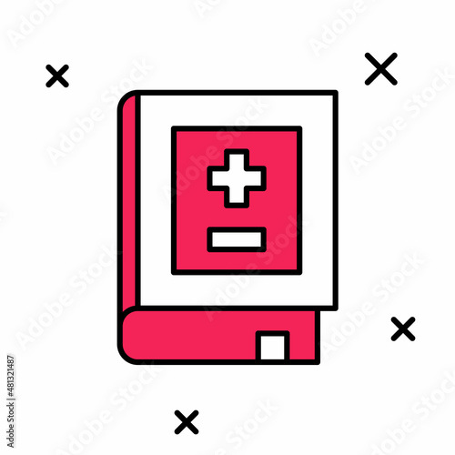 © Iryna, Obraz premium Filled outline Book with mathematics icon isolated on white background. Math book. Education concept about back to school. Vector