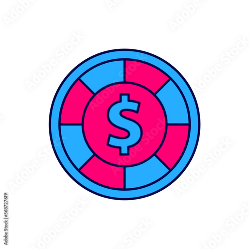 © Kostiantyn, Obraz premium Filled outline Casino chips icon isolated on white background. Casino gambling. Vector