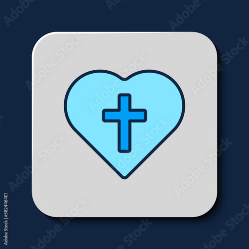 Fototapeta premium Filled outline Christian cross in heart icon isolated on blue background....