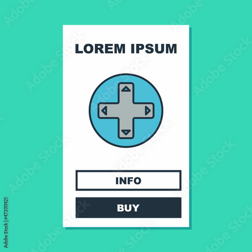 © Iryna, Obraz premium Filled outline Game controller or joystick for game console icon isolated on turquoise background. Vector