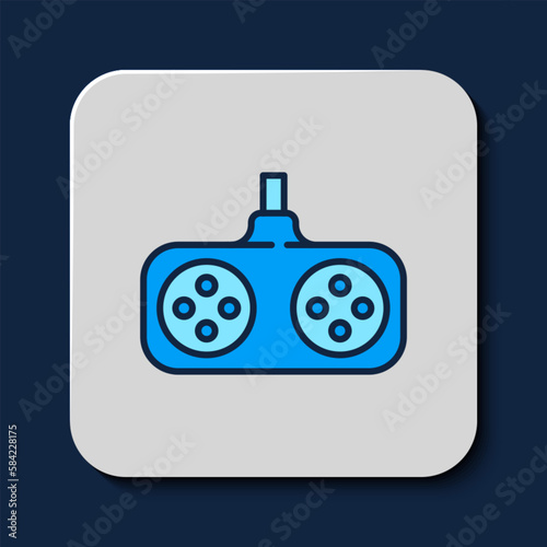 Obraz premium Filled outline Gamepad icon isolated on blue background. Game controller. Vector