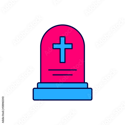 © Kostiantyn, Fototapeta premium Filled outline Grave with tombstone icon isolated on white background. Vector