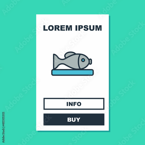 © Iryna, Naklejka premium Filled outline Served fish on a plate icon isolated on turquoise background. Vector
