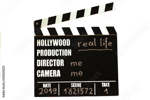 Obraz premium Film slate - film clapperboard. Real life.