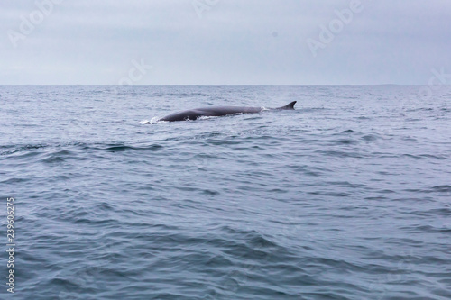 Obraz premium Fin whales swimming in the waters of the Pacific Ocean in front of Atacama Desert at Chile, a nice place for Whale Watching and marine sea life on a wild environment, an amazing place to enjoy nature