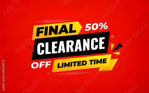 Fototapeta premium Final clearance special sale banner template design, Special offer sale tag, sale offer banner. Sale discount promotion template for marketing, vector editable illustration.