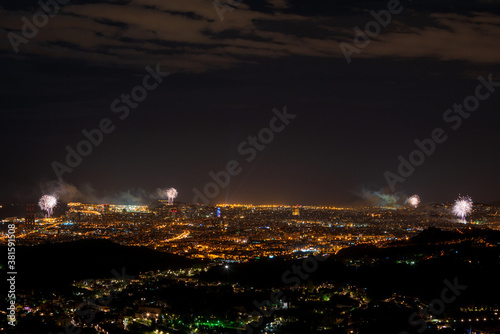 Fototapeta premium Final of the festival of La Mercè 2020 with fireworks distributed throughout...