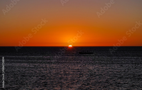 Naklejka premium Final rays of sunlight over the ocean