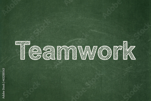 © Maksim Kabakou, Obraz premium Finance concept: Teamwork on chalkboard background