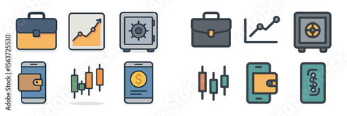 © Zaleman, Obraz premium Financial and business icons representing data analysis, security, and mobile transactions for digital finance