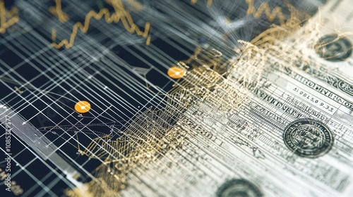 Obraz premium Financial Background with Dollar Bill and Graph Lines