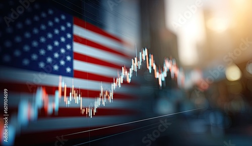 Fototapeta premium Financial chart overlaid with American flag