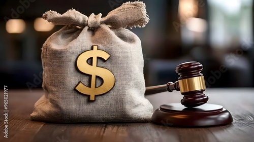 Fototapeta premium Financial Conflict Symbolized by Dollar Sign and Gavel