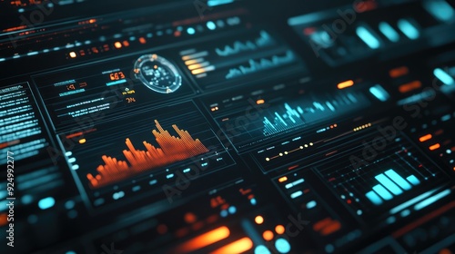 © MAGNIFIER, Obraz premium Financial data analysis, futuristic chart dashboard, 3D illustration