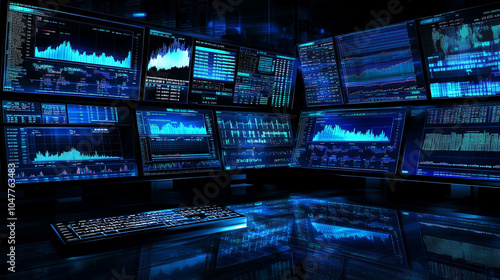 © Daniel, Obraz premium Financial Data Analysis Multiple Monitors Stock Market Data Visualization Charts Grap